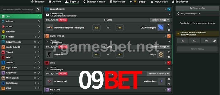 O 09bet oferece uma grande seleção de opções de apostas em e-sports com probabilidades competitivas